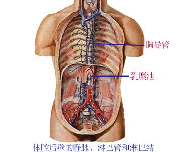 (3)收集范围:共六干。左腰干、右腰干、肠干、左颈干、左锁骨下干、左支气管纵隔干。