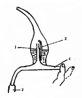 (二)目的 1.治疗呼吸道感染,消除炎症和水肿。 2.解痉。 3.稀化痰液,帮助祛痰。 (三)用物 雾化吸入器,氧气吸入装置1套(不用温化瓶)或压缩空气机1套。 (四)常用药物及其作用 1.抗生素,如卡那霉素,庆大霉素等。 2.解痉药物,如氨茶碱,舒喘灵等。 3.稀化痰液帮助祛痰,如α-糜蛋白酶、易咳净(痰易净)等。 4.减轻水肿,如地塞米松等。 (五)操作方法 1.按医嘱抽药液,用蒸馏水稀释或溶解药物在5ml以内,注入雾化器。 2.能起床者,可在治疗室内进行。不能下床者,则将用物携至床边,核对,向病人解释,以取合作,初次作此治疗,应教给病人使用方法。 3.嘱病人漱口以清洁口腔,取舒适体位,将喷雾器的“1”端连接在氧气筒的橡胶管上,取下湿化瓶,再调节氧流量达6-10L/min,便可使用。 4.病人手持雾化器,把喷气管“5”放入口中,紧闭口唇,吸气时以手指按住“2”出气口,同时深吸气,可使药液充分达至支气管和肺内,吸气后再屏气1-2秒,则效果更好,呼气时,手指移出气口,以防药液丢失。如病人感到疲劳,可放松手指,休息片刻再进行吸入,直到药液喷完为止,一般10-15分钟即可将5ml药液雾化完毕。 5.吸毕,取下雾化器,关闭氧气筒,清理用物,将雾化器放消毒液中浸泡30分钟,然后再清洁、擦干、物归原处,备用。 6.在氧气雾化吸入过程中,注意严禁接触烟火及易燃品。 二、超声波雾化吸入法 超声波雾化器是应用超声波声能, 药液变成细微的气雾,现由呼吸道吸入,达到治疗目的,其特点是雾量大小可能调节,雾滴小而均匀(直径在5μm 以下),药液随着深而慢的吸气被吸入终末支气管及肺泡。又因雾化器电子部分能产热,对雾化液有加温作用,使病人吸入温暖、舒适的气雾。 (一)超声波雾化器的结构 1.超声波发生器 通电后输出高频电能。雾化器面板上操纵调节器有电源开关、雾化开关、雾量调节旋钮。 2.水槽 盛蒸馏水。水槽下方有一晶体换能器,接发生器发出的频电能,将其转化为超声波声能。 3.雾化罐(杯)盛药液。雾化罐底部的半透明膜为透声膜。当声能透过此膜与罐内药液作用,产生雾滴喷出。 4.螺纹管和口含嘴(或面罩)(图14-12)。