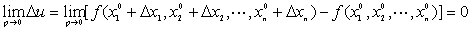 定义3  当自变量的改变量Δxi(i=1,2,,n)为无穷小量时,函数的改变量也是无穷小量,或者写为