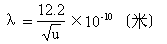 再如,电子经电场加速(加速电位差为u)后,电子的速度将由关系式