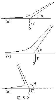 式中M是a粒子的质量,重金属原子核的质量和a粒子的质量相比较,可以看作是无穷大。由上式可知,“瞄准”距离P愈小,偏转角θ愈大。对于不同的“瞄准”距离,a粒子的轨道形状可有如图5-2所示