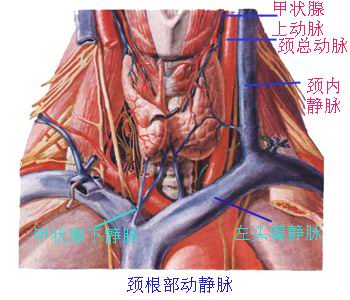 (2)锁骨下静脉:自第一肋外侧缘续于腋静脉,与颈内静脉汇合前尚接受颈外静脉。