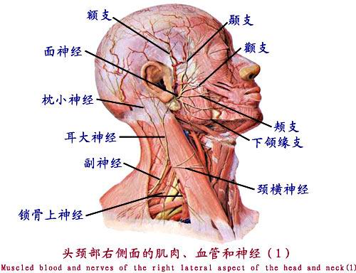(1)浅支:为数条细小分支,自胸锁乳突肌后缘中点穿出,呈放射状分布于颈侧部、头后外侧、耳廓及肩部皮肤。