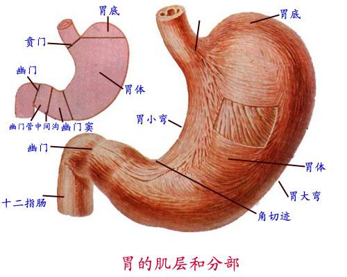 分四部,即贲门部、胃底、胃体和幽门部。幽门部临床也称胃窦,分幽门窦和幽门管两部。