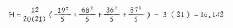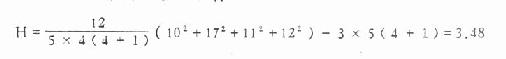 式中N为各组例数之和,Ri和ni为各组的秩号之和以及例数: