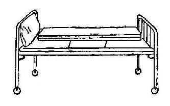 病床:钢丝床或木板床(骨折病人应选用木板床或三折木板床)。床长2米,宽90cm,高60cm,装有滑轮和靠背架,便于推动和治疗。
