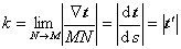 k表示包含点M的部分曲线偏离直线的程度,也是切线方向对于弧长的转动率
