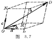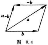 把矢量的始点移到原点O,以ab为边作平行四边行,由原点作出的对角线就表示和矢量ab(称为平行四边形法则,见图8.2);或者把二矢量首尾相接,由始点到终点的矢量即为和矢量a+b(称为三角形法则,见图8.3).