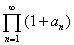 特别,如果an<0且级数发散,或级数收敛而级数发散,那末无穷乘积具有零值.