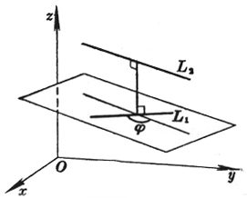 所谓最短距离是指L1, L2的公共垂线与此两线交点之间的距离,式中正负号与行列式取同号.从此推出二直线共面的条件为d=0,所在平面的方程为