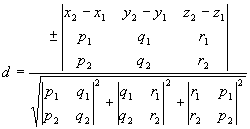 式中d为点M(x0, y0, z0)到直线L的距离,ijk为三个坐标轴上的单位矢量,最外面的符号“| |”表示矢量的模