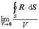 [矢量的体积导数]  如果S是包围体积V的闭曲面,并包含点r,则沿闭曲面S的曲面积分(dS, R·dS, R×dS)与体积V之比,当V趋于零时(即它的直径)的极限称为标量场(或矢量场R)在点r处的体积导数(或空间导数).