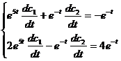 Secondly, use the constant variation method to find a special solution of the inhomogeneous linear equation system (1) . Consider c 1 , c 2 as a function of t , and solve the following equation system