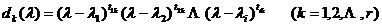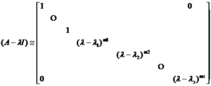 [ Standard form of λ matrix ] Let the rank of the λ matrix be r and the invariant factor be , then