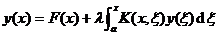 Set on a finite interval or square, the continuous functions F ( x ) and K ( x, ξ ) satisfy