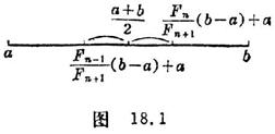 If you want to limit the number of tests on the definition interval of the function to find the optimal point, you can divide the interval into equal parts, take the first test point at , and use the method of finding a symmetrical point ( symmetrical about the midpoint of the interval ) for subsequent test points ( Figure 18. 1) , a total of tests were done,