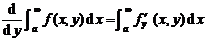 [ Differentiation with respect to parameters ] If (i) the function f ( x , y ) is continuous in the region R ( a ≤ x < ∞ , y 1 < y < y 2 ) and is differentiable with respect to the parameter y , (ii) the integral Convergence, (iii) the integral converges uniformly in the interval ( y 1 , y 2 ) , then when y 1 < y < y 2 ,![]()