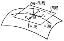 [ Gauss's formula and Eingelden's formula ] Let the parametric equation of the surface be, take three non-coplanar vectors at each point M on the surface, and the trihedron composed of these three vectors is called the movable frame or the companion of the surface. Trihedral; note that here and are not perpendicular to each other, but they are both on the tangent plane and perpendicular to the normal unit vector N .![]()
